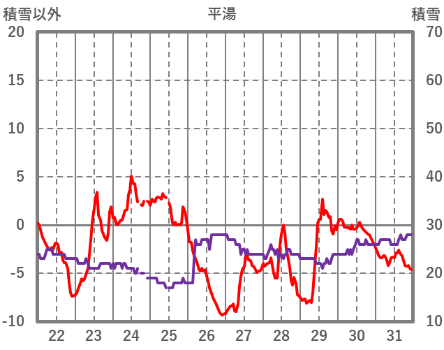 | 日 | 時 | 気温 | 降水 | 風向/風速 | 日照 | 積雪 | 降雪 |