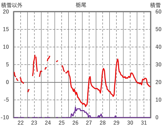 | 日 | 時 | 気温 | 降水 | 風向/風速 | 日照 | 積雪 | 降雪 |