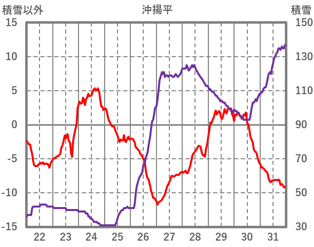 | 日 | 時 | 気温 | 降水 | 風向/風速 | 日照 | 積雪 | 降雪 |