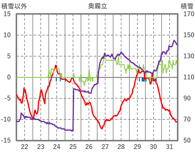 | 日 | 時 | 気温 | 降水 | 風向/風速 | 日照 | 積雪 | 降雪 |