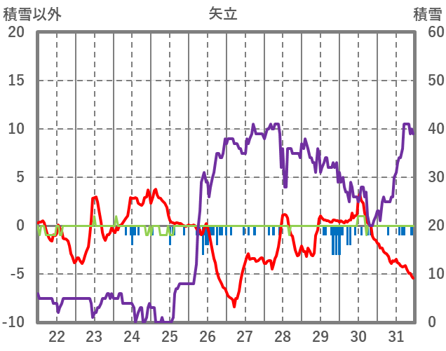 | 日 | 時 | 気温 | 降水 | 風向/風速 | 日照 | 積雪 | 降雪 |