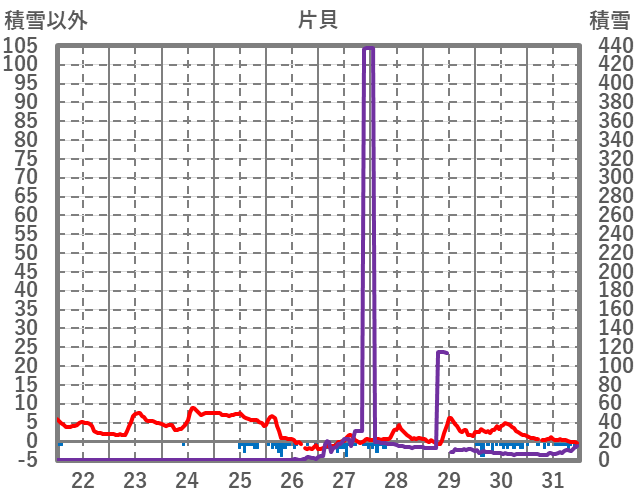 | 日 | 時 | 気温 | 降水 | 風向/風速 | 日照 | 積雪 | 降雪 |