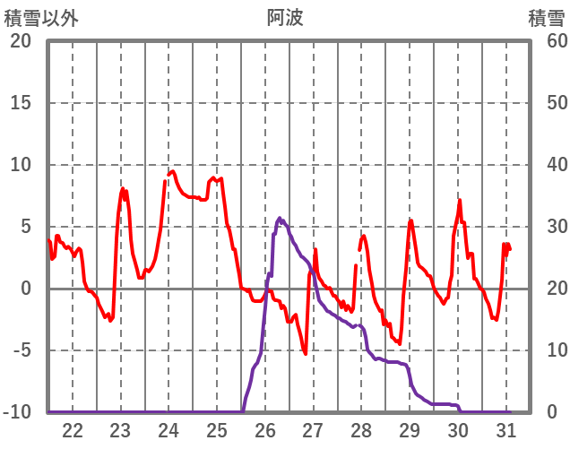 | 日 | 時 | 気温 | 降水 | 風向/風速 | 日照 | 積雪 | 降雪 |