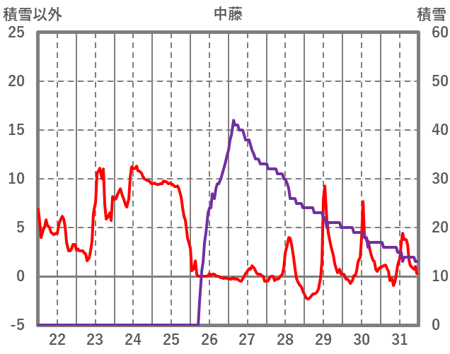 | 日 | 時 | 気温 | 降水 | 風向/風速 | 日照 | 積雪 | 降雪 |