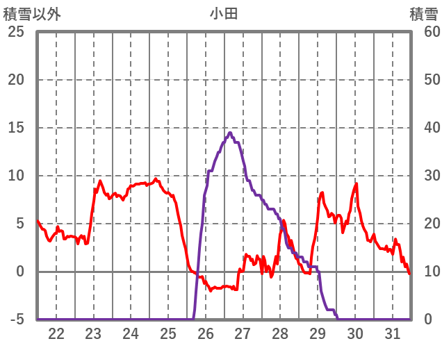 | 日 | 時 | 気温 | 降水 | 風向/風速 | 日照 | 積雪 | 降雪 |