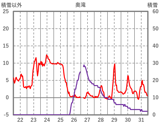| 日 | 時 | 気温 | 降水 | 風向/風速 | 日照 | 積雪 | 降雪 |