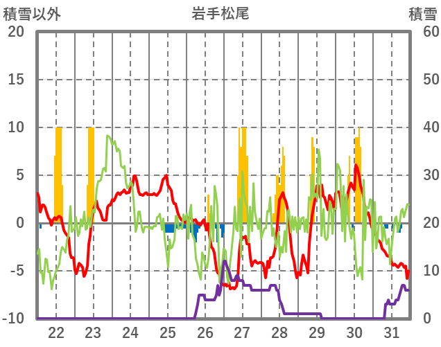 | 日 | 時 | 気温 | 降水 | 風向/風速 | 日照 | 積雪 | 降雪 |
