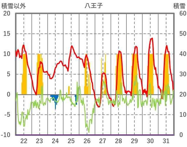 | 日 | 時 | 気温 | 降水 | 風向/風速 | 日照 | 積雪 | 降雪 |