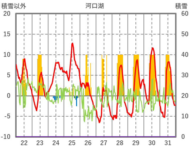 | 日 | 時 | 気温 | 降水 | 風向/風速 | 日照 | 積雪 | 降雪 |