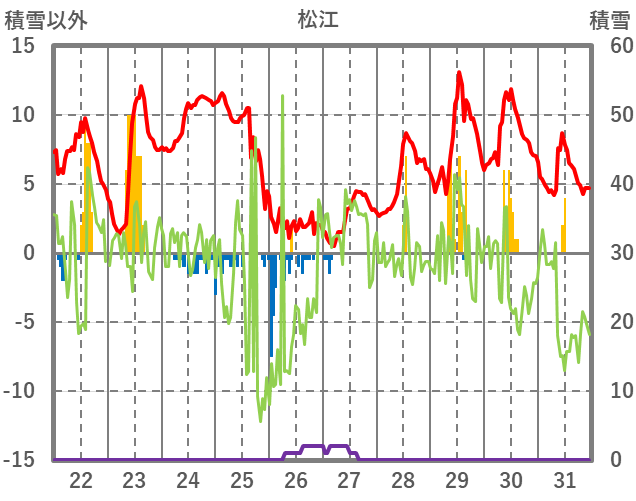 | 日 | 時 | 気温 | 降水 | 風向/風速 | 日照 | 積雪 | 降雪 |