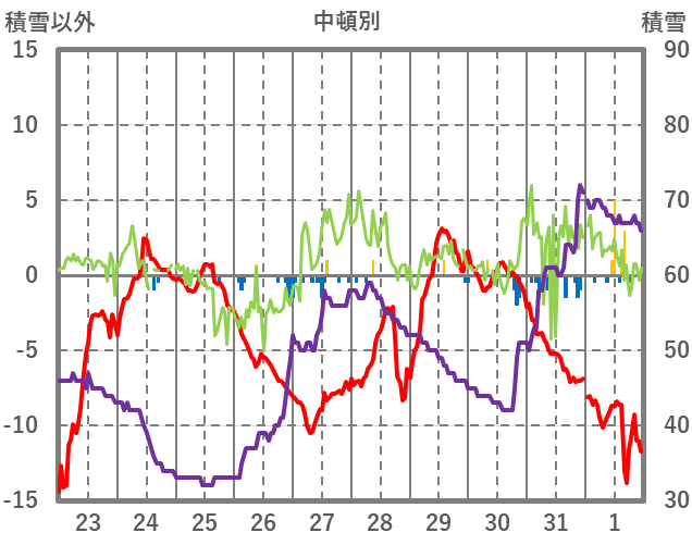| 日 | 時 | 気温 | 降水 | 風向/風速 | 日照 | 積雪 | 降雪 |