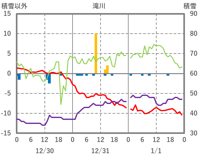| 日 | 時 | 気温 | 降水 | 風向/風速 | 日照 | 積雪 | 降雪 |