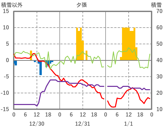 | 日 | 時 | 気温 | 降水 | 風向/風速 | 日照 | 積雪 | 降雪 |