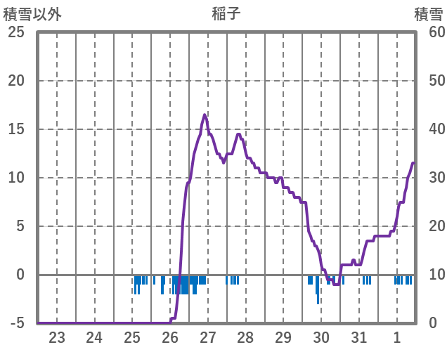 | 日 | 時 | 気温 | 降水 | 風向/風速 | 日照 | 積雪 | 降雪 |