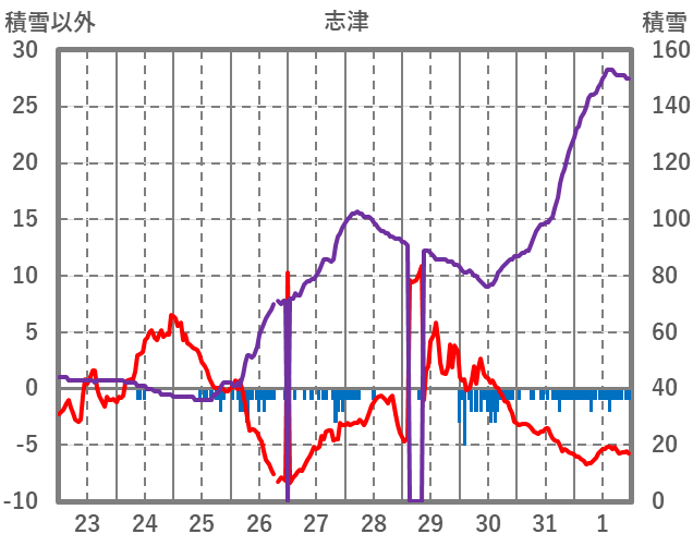 | 日 | 時 | 気温 | 降水 | 風向/風速 | 日照 | 積雪 | 降雪 |
