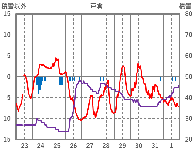| 日 | 時 | 気温 | 降水 | 風向/風速 | 日照 | 積雪 | 降雪 |