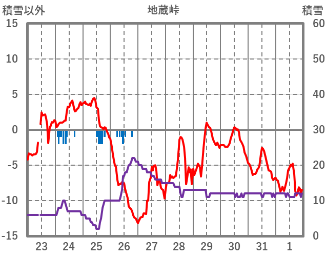 | 日 | 時 | 気温 | 降水 | 風向/風速 | 日照 | 積雪 | 降雪 |