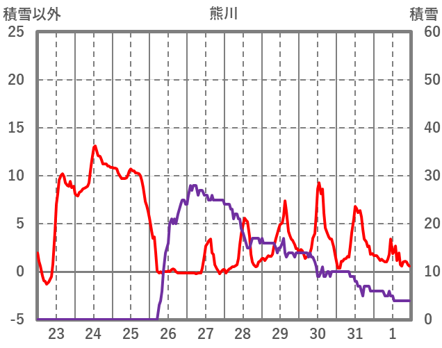 | 日 | 時 | 気温 | 降水 | 風向/風速 | 日照 | 積雪 | 降雪 |