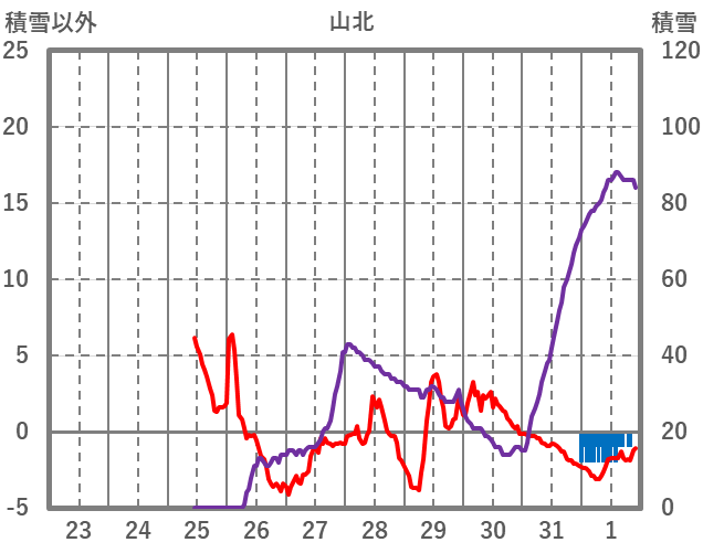 | 日 | 時 | 気温 | 降水 | 風向/風速 | 日照 | 積雪 | 降雪 |