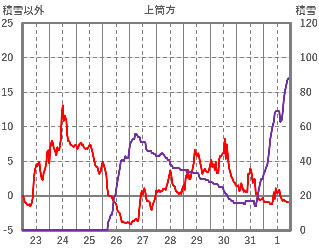 | 日 | 時 | 気温 | 降水 | 風向/風速 | 日照 | 積雪 | 降雪 |