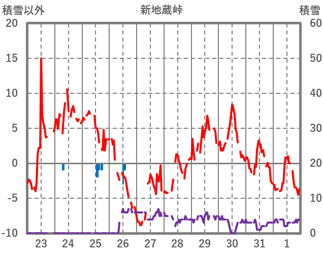 | 日 | 時 | 気温 | 降水 | 風向/風速 | 日照 | 積雪 | 降雪 |