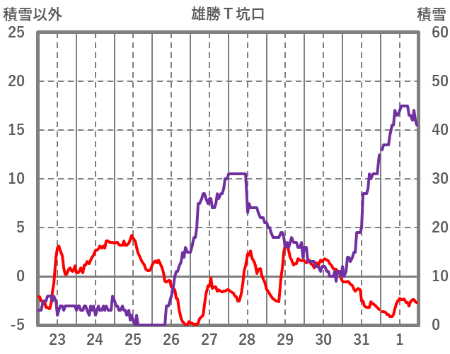 | 日 | 時 | 気温 | 降水 | 風向/風速 | 日照 | 積雪 | 降雪 |