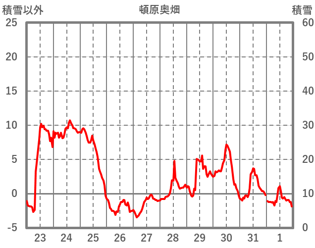 | 日 | 時 | 気温 | 降水 | 風向/風速 | 日照 | 積雪 | 降雪 |