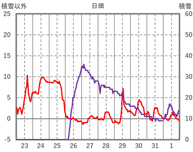 | 日 | 時 | 気温 | 降水 | 風向/風速 | 日照 | 積雪 | 降雪 |