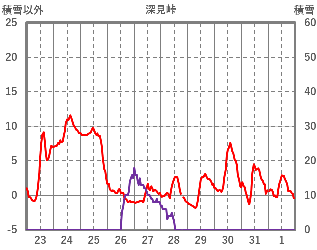 | 日 | 時 | 気温 | 降水 | 風向/風速 | 日照 | 積雪 | 降雪 |