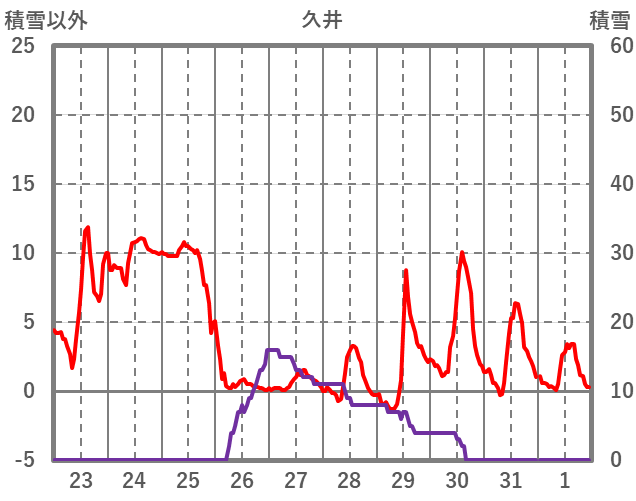 | 日 | 時 | 気温 | 降水 | 風向/風速 | 日照 | 積雪 | 降雪 |