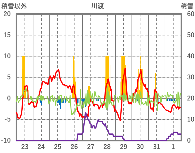 | 日 | 時 | 気温 | 降水 | 風向/風速 | 日照 | 積雪 | 降雪 |