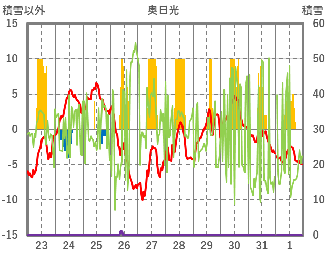 | 日 | 時 | 気温 | 降水 | 風向/風速 | 日照 | 積雪 | 降雪 |