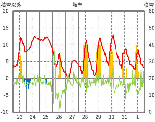 | 日 | 時 | 気温 | 降水 | 風向/風速 | 日照 | 積雪 | 降雪 |