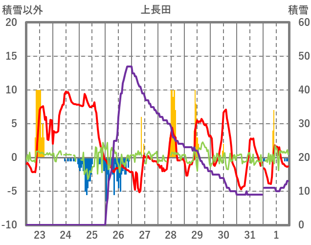 | 日 | 時 | 気温 | 降水 | 風向/風速 | 日照 | 積雪 | 降雪 |