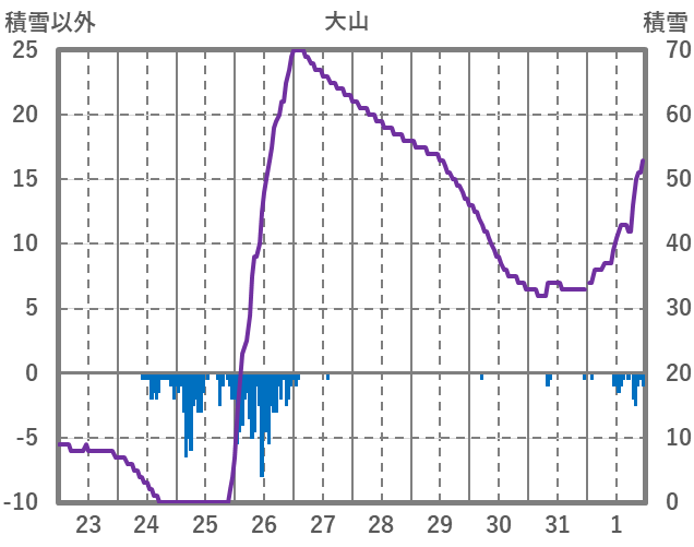 | 日 | 時 | 気温 | 降水 | 風向/風速 | 日照 | 積雪 | 降雪 |
