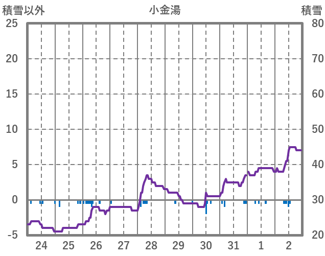 | 日 | 時 | 気温 | 降水 | 風向/風速 | 日照 | 積雪 | 降雪 |