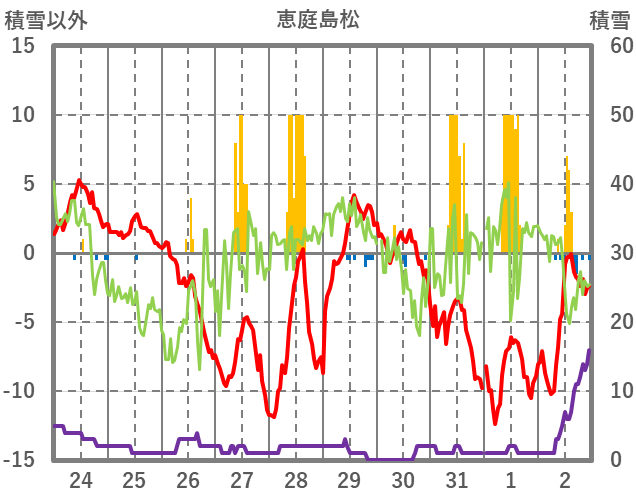 | 日 | 時 | 気温 | 降水 | 風向/風速 | 日照 | 積雪 | 降雪 |