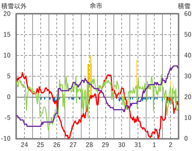 | 日 | 時 | 気温 | 降水 | 風向/風速 | 日照 | 積雪 | 降雪 |