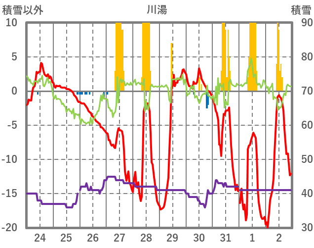 | 日 | 時 | 気温 | 降水 | 風向/風速 | 日照 | 積雪 | 降雪 |