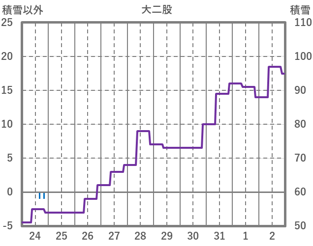 | 日 | 時 | 気温 | 降水 | 風向/風速 | 日照 | 積雪 | 降雪 |