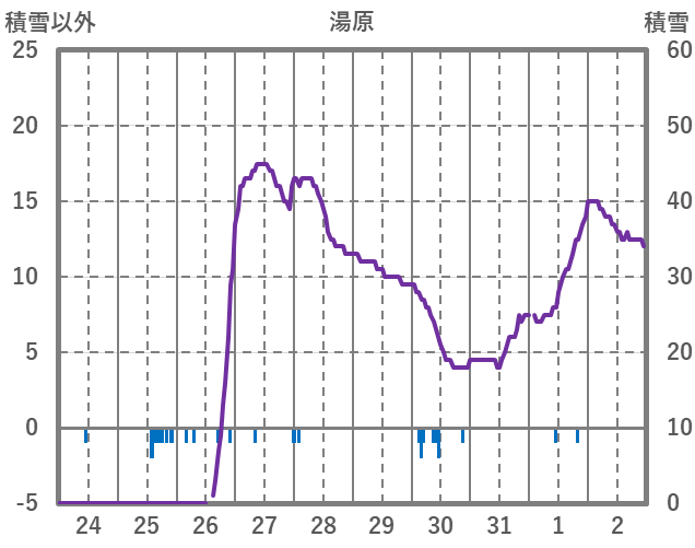 | 日 | 時 | 気温 | 降水 | 風向/風速 | 日照 | 積雪 | 降雪 |