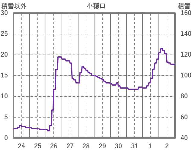 | 日 | 時 | 気温 | 降水 | 風向/風速 | 日照 | 積雪 | 降雪 |