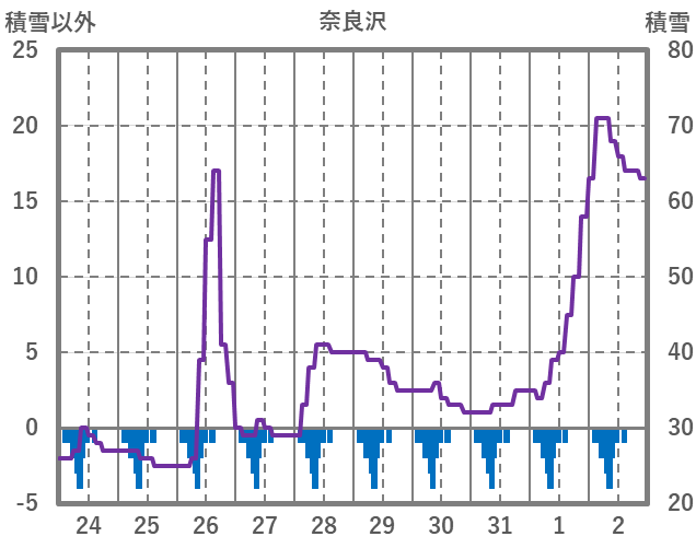 | 日 | 時 | 気温 | 降水 | 風向/風速 | 日照 | 積雪 | 降雪 |