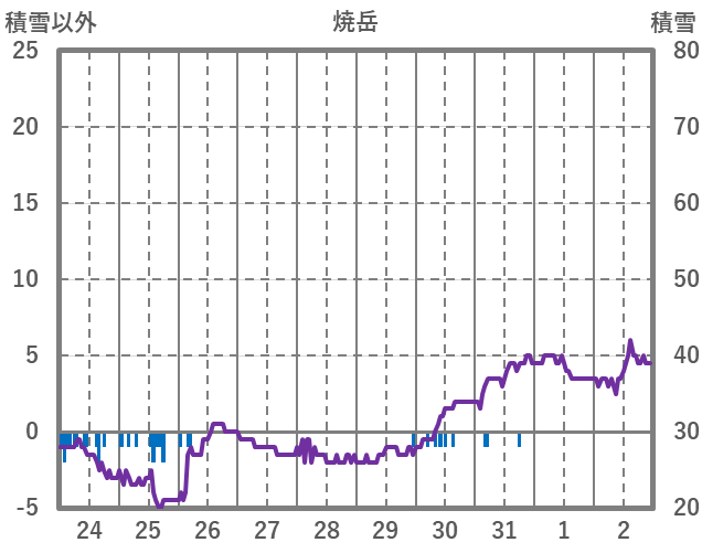 | 日 | 時 | 気温 | 降水 | 風向/風速 | 日照 | 積雪 | 降雪 |