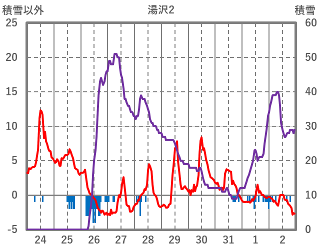 | 日 | 時 | 気温 | 降水 | 風向/風速 | 日照 | 積雪 | 降雪 |