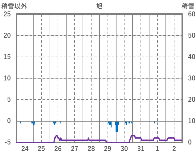 | 日 | 時 | 気温 | 降水 | 風向/風速 | 日照 | 積雪 | 降雪 |