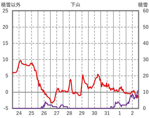 | 日 | 時 | 気温 | 降水 | 風向/風速 | 日照 | 積雪 | 降雪 |