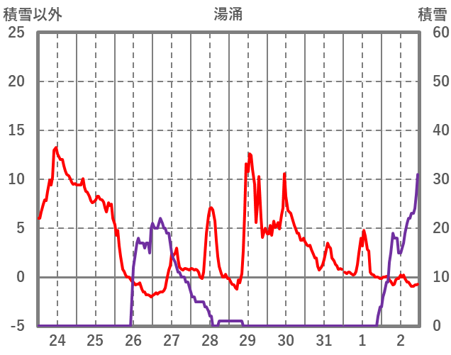 | 日 | 時 | 気温 | 降水 | 風向/風速 | 日照 | 積雪 | 降雪 |