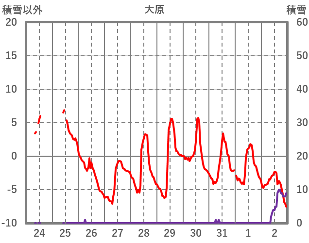 | 日 | 時 | 気温 | 降水 | 風向/風速 | 日照 | 積雪 | 降雪 |