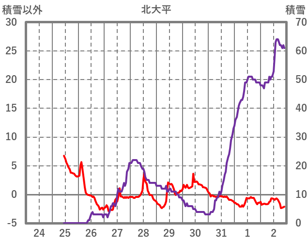 | 日 | 時 | 気温 | 降水 | 風向/風速 | 日照 | 積雪 | 降雪 |